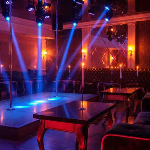 - Бар отличается презентабельностью и разнообразием как VIP зон, так и залов для отдыха. На просторной сцене гости могут наблюдать не меньше 14 одновременно танцующих обольстительниц.